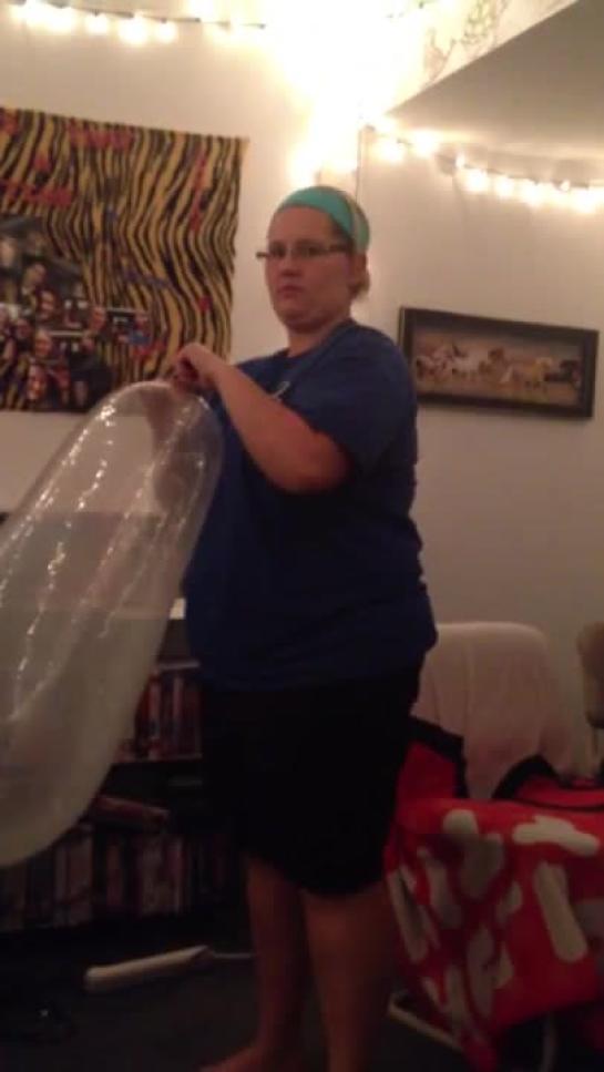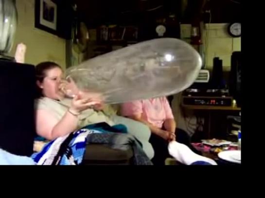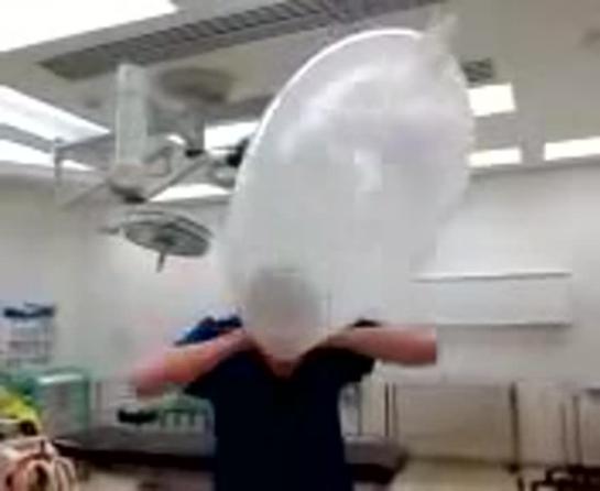 BLOWING UP A LONG RUBBER GLOVE LIKE A BALLOON IN 2 MINS 43 SEC USING LUNGS ONLY
