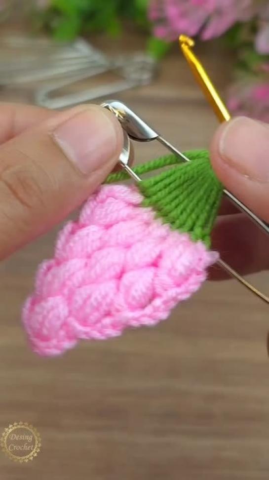 Лепестки цветка тунисским вязанием крючком